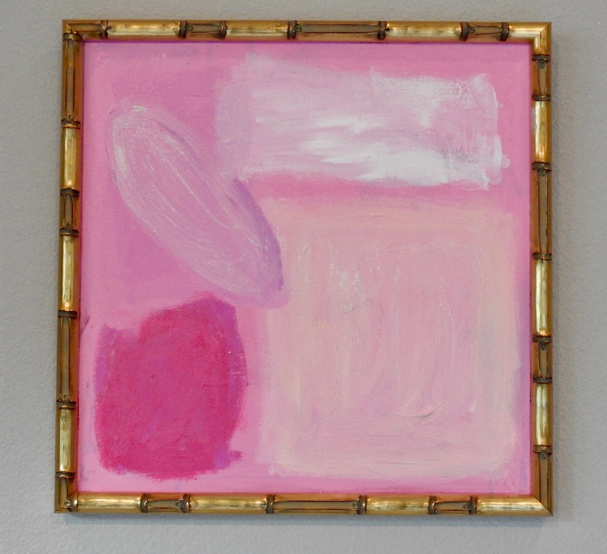 Acrylic on canvas, framed in gold bamboo frame and ready to hang. 13 x 13 in frame.